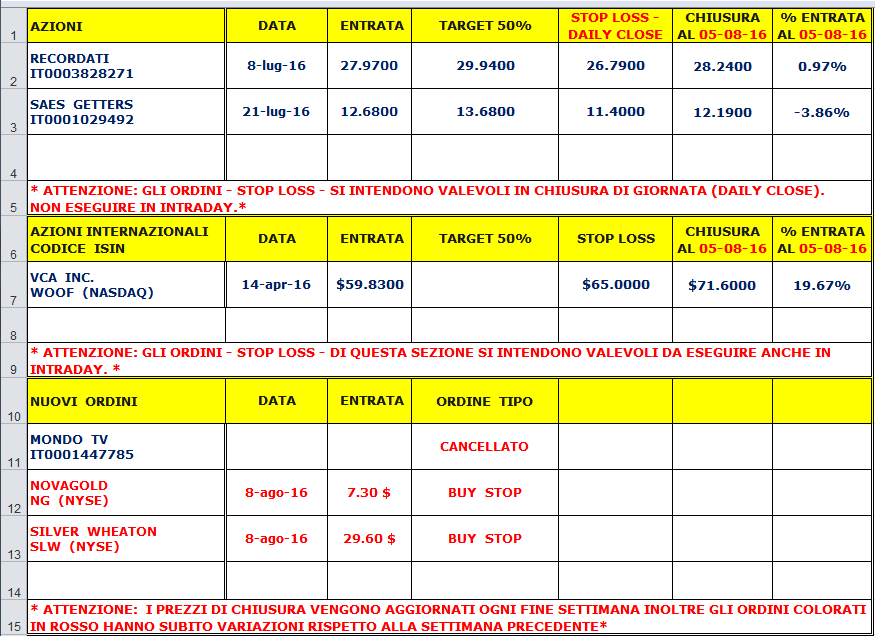 Pubblicato Dom 07 Agosto 2016 - 18:47 da La redazione Tag: Borsa