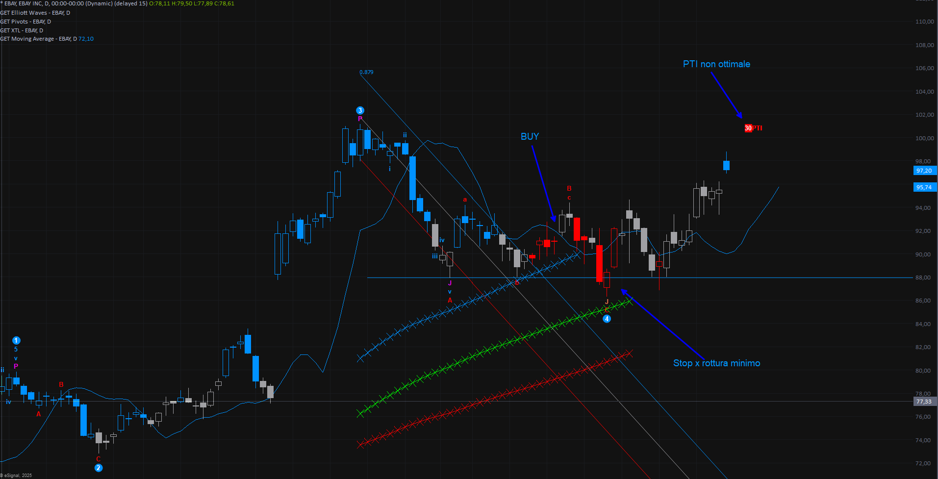 Titolo che ha ricostruito un trend rialzista e ottimo trade in positivo dall'entrata (superamento media mobile).