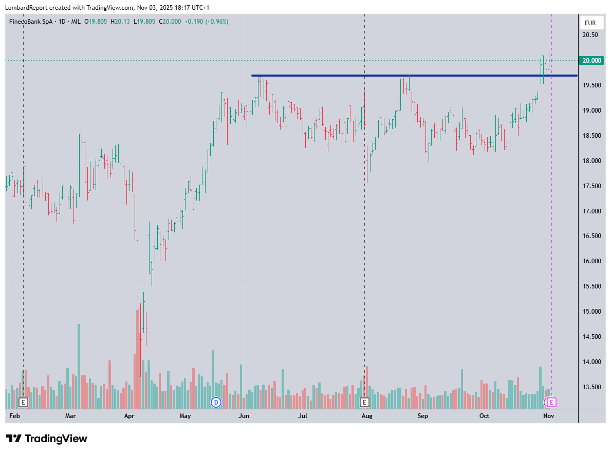 FINECO BANK: segnaliamo azione in breakout sopra rettangolo di congestione