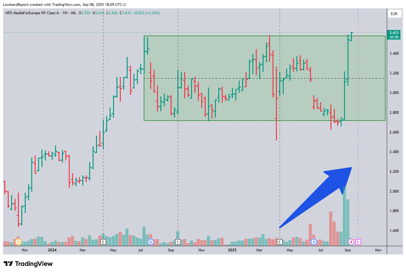 MFE: esplosione al rialzo senza pari, ma non è finita qui, questa è la prima gamba. Se storna lo prendiamo al rialzo.