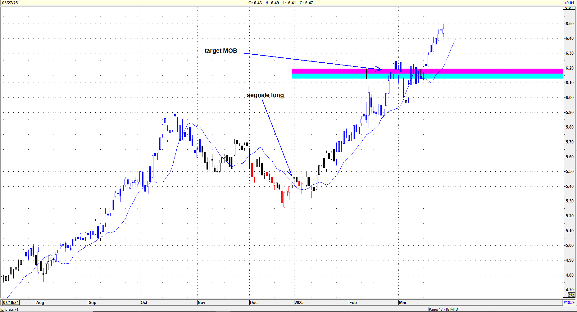 MOB (Make or Break): Il livello MOB, o "Make or Break," rappresenta una zona di proiezione dei prezzi calcolata con l'analisi di momentum. Rappresenta un livello fondamentale che, se mantenuto, può fungere da punto di rimbalzo per il titolo. Se infranto, invece, segnala una probabile accelerazione nella direzione della rottura, spesso anticipando un movimento deciso di prezzo.