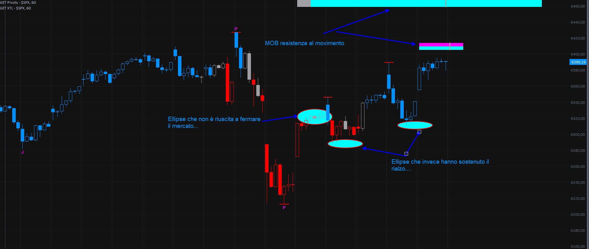La conferma di questo cambio di trend è arrivata dalla reazione avuta prima ancora di raggiungere sia le MOB che l'ellipse di supporto, segnale di una forza relativa significativa.