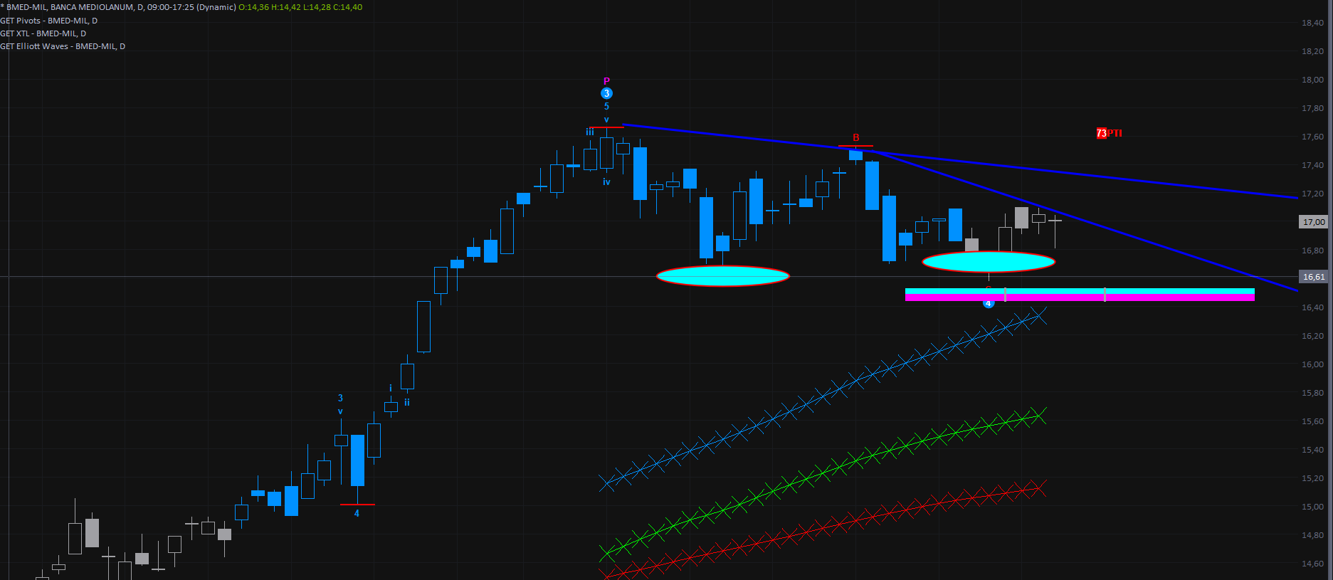 MOB (Make or Break): Il livello MOB, o "Make or Break," rappresenta una zona di proiezione dei prezzi calcolata con l'analisi di momentum. Rappresenta un livello fondamentale che, se mantenuto, può fungere da punto di rimbalzo per il titolo. Se infranto, invece, segnala una probabile accelerazione nella direzione della rottura, spesso anticipando un movimento deciso di prezzo.