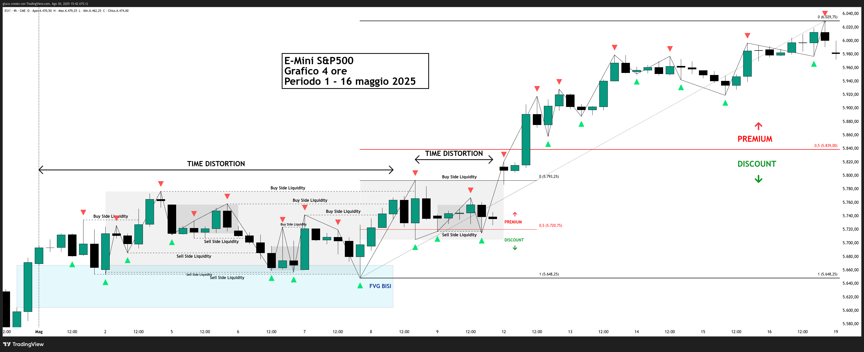 Gli Samrt Money accumulano posizioni in zona Discount rompendo ripetutamente massimi (triengolini rossi) e minimi (triangolini verdi) strutturali e manipolando sia la Sell Side che la Buy Side Liquidity, prima di rompere struttura al rialzo.