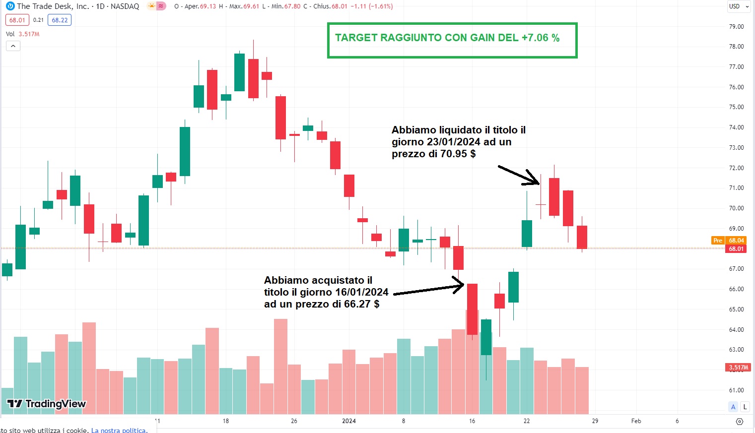 Il titolo del Nasdaq100 Trade Desk ci ha regalato un ottimo 7.06% di guadagno in appena una settimana di contrattazione !