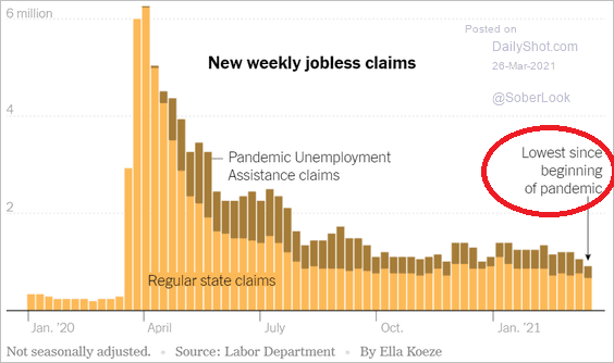Tra le positive il minor numero di sussidi di disoccupazione dall’inizio della pandemia, l’occupazione nei ristoranti si sta avvicinando a quella del febbraio 2020, i tassi di interesse sui mutui ormai hanno cambiato decisamente direzione (nel grafico che segue mostriamo come le linee di tendenza siano buone anche sulle serie storiche macro) e un mercato immobiliare che ormai è imbarazzante con circa 4 offerte per ogni vendita e case che vengono messe in vendita e vendute da 15 a 30 giorni (di nuovo pubblico di seguito alcuni grafici che vi danno il polso di come Italia e USA siano due pianeti diversi):