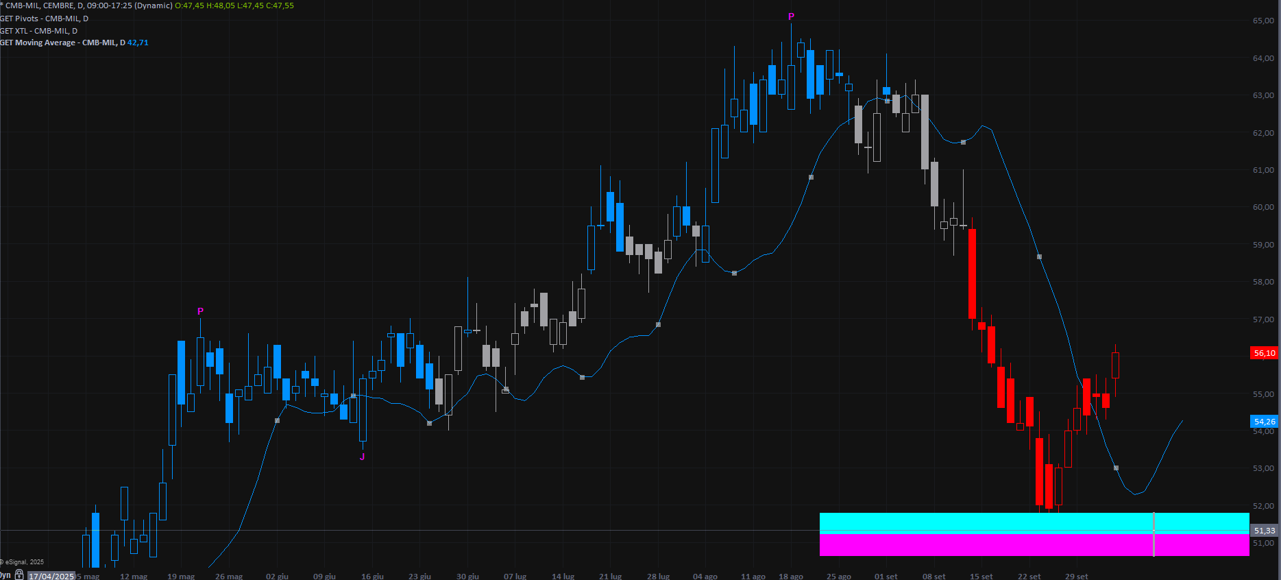 Per quanto riguarda Cembre, inserita in osservazione il 23 settembre, la MOB ha respinto il titolo dando il via ad un suo tentativo di rialzo.