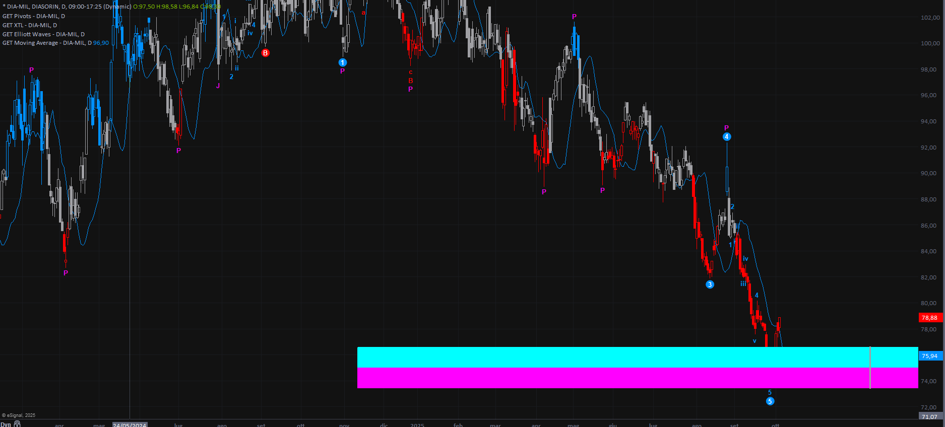 Diasorin sembra che la seconda MOB (la prima è stata perforata e rimossa per rendere il grafico più pulito) stia effettivamente svolgendo il proprio ruolo di supporto, contenendo per ora il movimento.