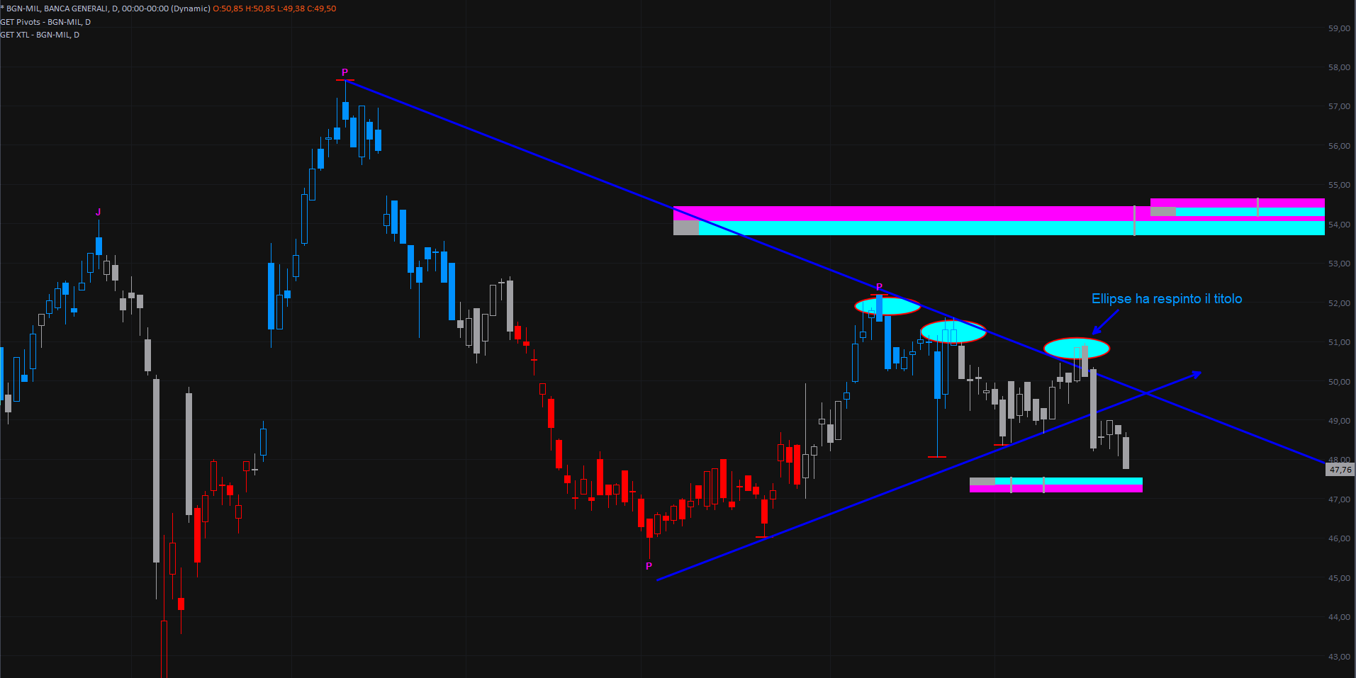 Banca Generali non è riuscita a superare l’Ellipse e quindi si è girata al ribasso..