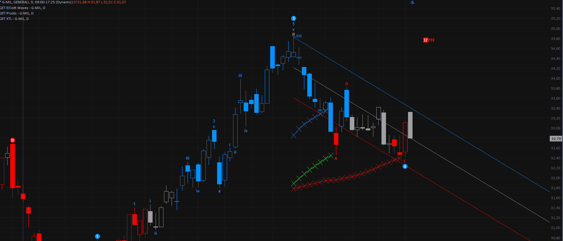 Generali non è ancora andata da nessuna parte...e il PTI è peggiorato per questo motivo infatti da 54 (14 settembre) è ad oggi 37, sempre rialzista ma ancora comunque è lì.