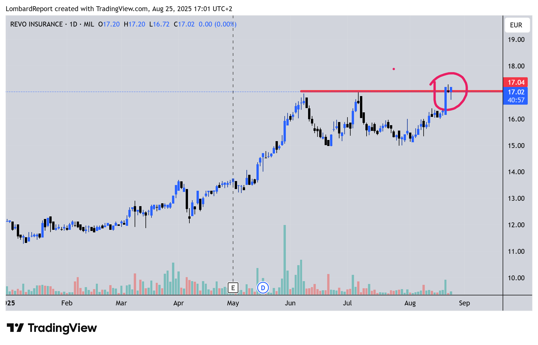 REVO INSURANCE: stiamo fuori per la liquidità ma siamo nel momento magico dopo il breakout, se rompe i massimi di 17.30 vola